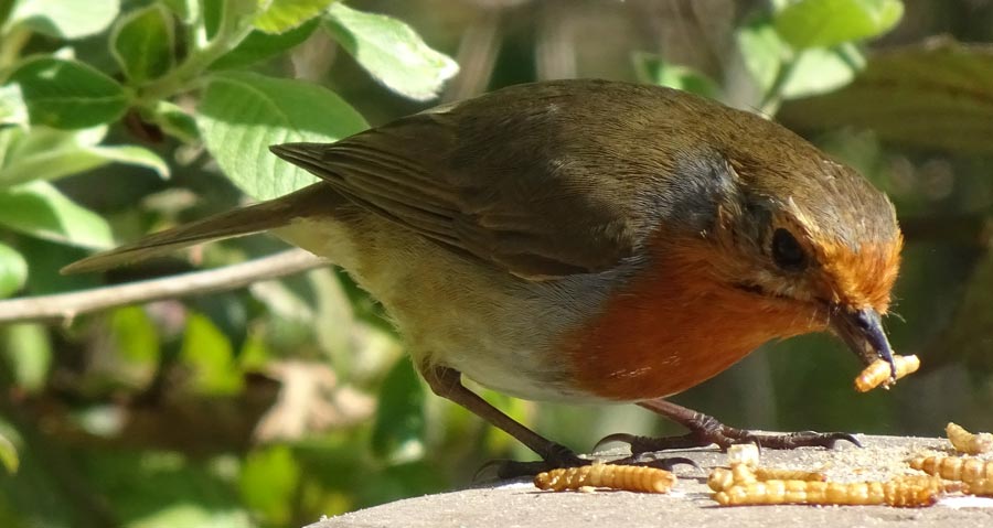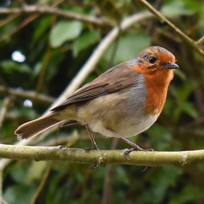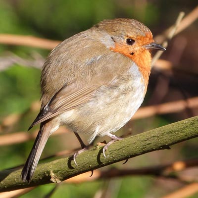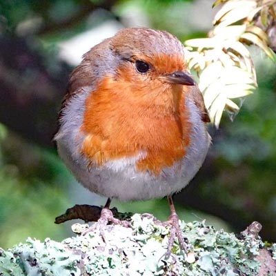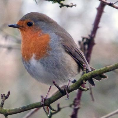 The UK's favourite bird! Males and females look identical, and young birds have no red breast and are spotted with golden brown. Robins sing nearly all year round and despite their cute appearance, they are aggressively territorial and are quick to drive away intruders.