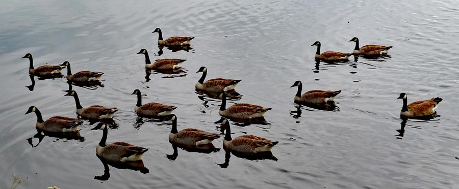 Canada geese are especially protective animals, and will sometimes attack any animal nearing its territory or offspring, including humans. Most of the species that prey on eggs also take a gosling. Although parents are hostile to unfamiliar geese, they may form groups of a number of goslings and a few adults, called crèches.