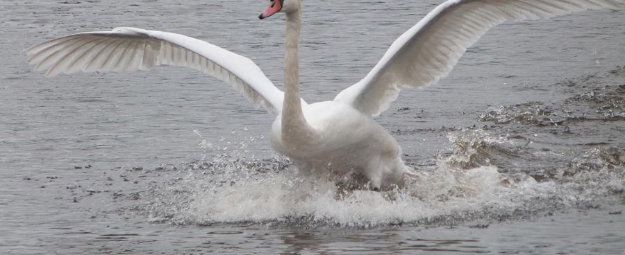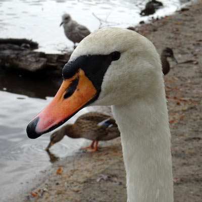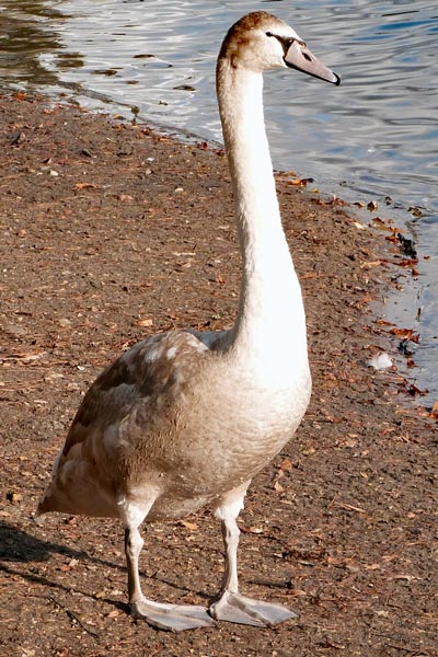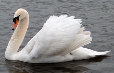 The swans on the Heath pond are mute swans. The male is called a "cob" - from Middle English cobbe (leader of a group); the female "pen," and their chicks are known as "cygnets" - from the Latin word for swan, cygnus.