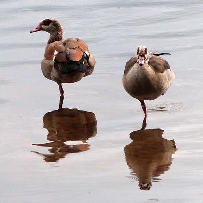 Once common along the entire Nile valley and regarded as sacred in ancient times, the Egyptian Goose is no longer an easy bird to see in the country from which it takes its name, as it is largely confined to upper Egypt. It is, however, widespread and common throughout sub-Saharan Africa, with introduced populations firmly established in England, Holland, Belgium and France.