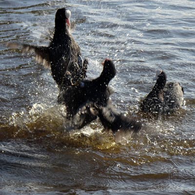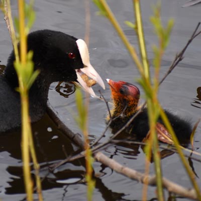 The Coot's nest is built in shallow water from vegetation, and usually in the shelter of vegetation but can be in the open.